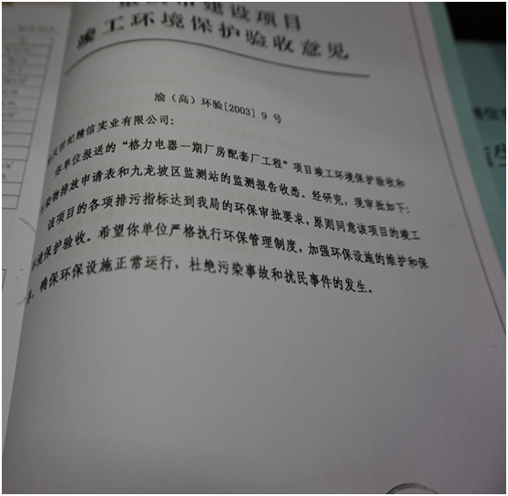 格力電器一期廠房配套廠工程環(huán)境保護(hù)驗收意見